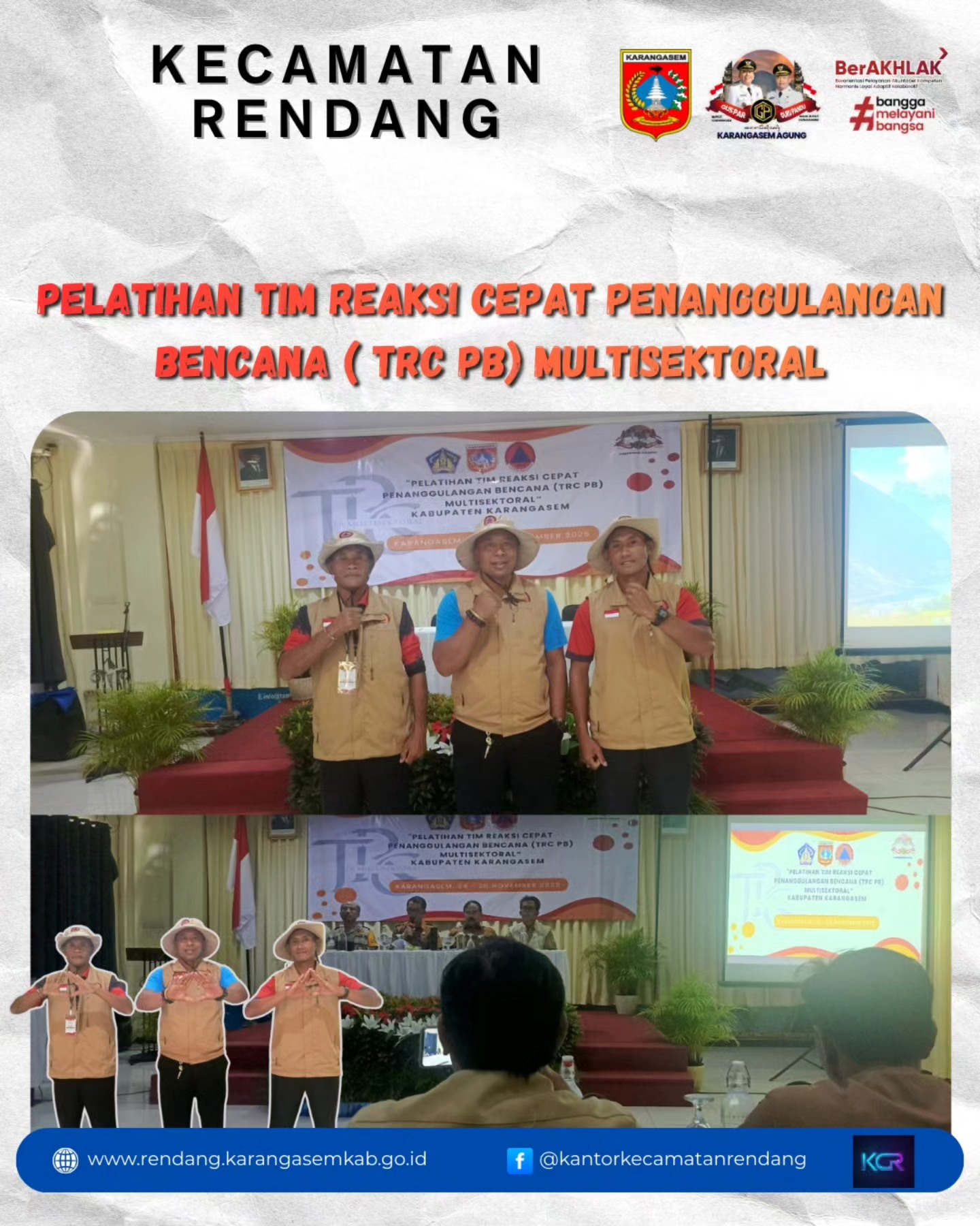 Pemerintah Kecamatan Rendang turut hadir!!! Kasi trantib dan staf KCR mengikuti Pelatihan Tim Reaksi Cepat Penanggulangan Bencana ( TRC PB) Multisektoral yang dise ... Lihat Selengkapnya