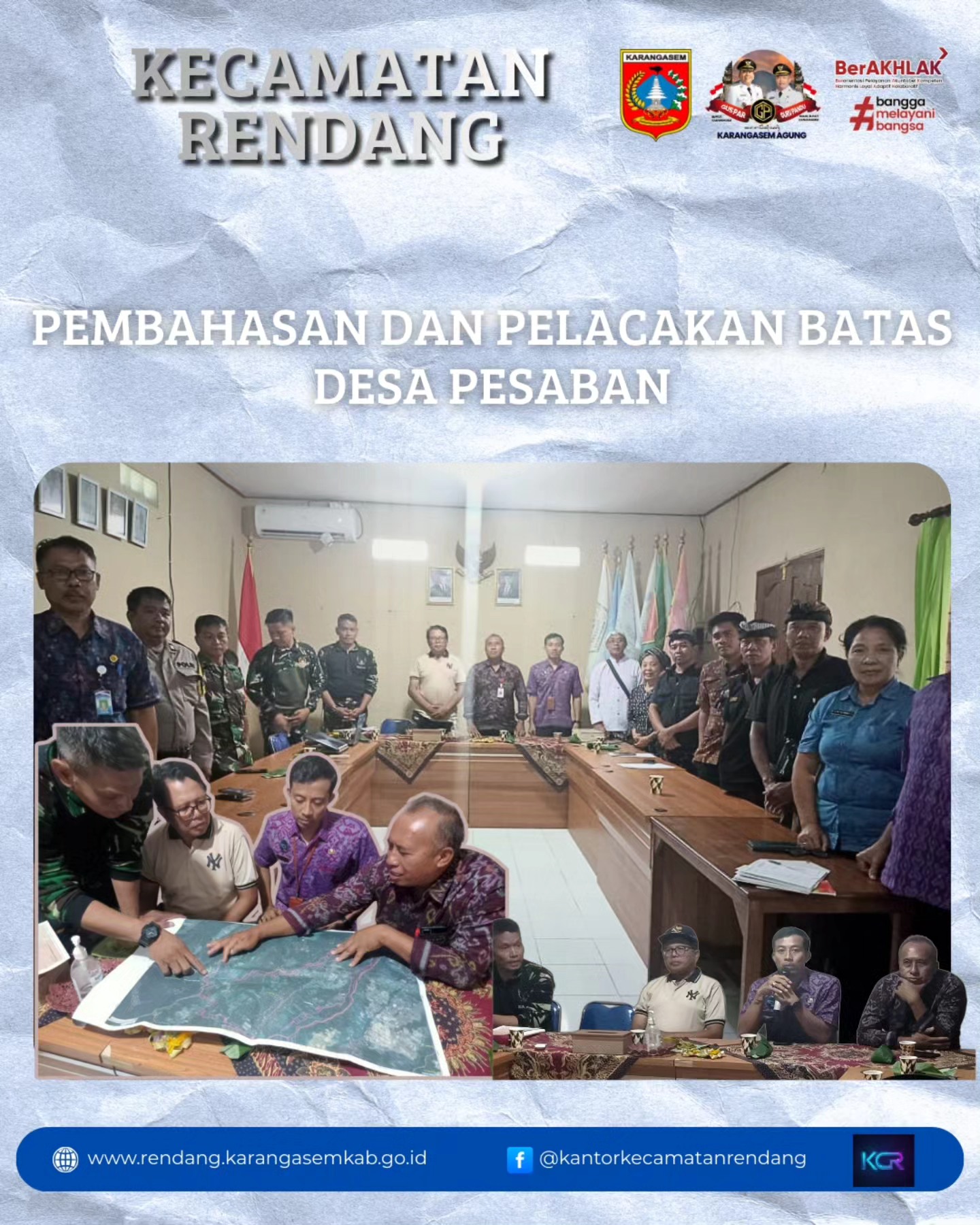 Camat Rendang hadir dalam Pembahasan dan Pelacakan Batas Desa!! Dalam rangka pemenuhan administrasi pemerintahan desa dan kewenangan atas wilayahnya. Penetapan bata... Baca Selengkapnya