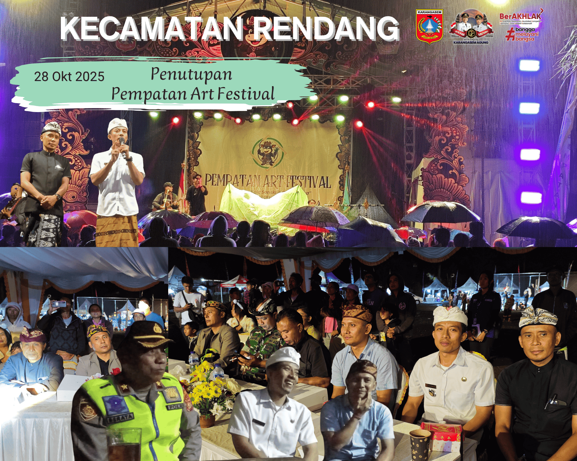 Camat Rendang hadir dalam penutupan Pempatan Art Festival 2025. Dalam rangka menyambut HUT Desa Pempatan ke-74 Pemerintah Desa Pempatan menyelenggarakan Pempatan Art Festival dengan tema "Sthanika Kala Sanskriti Udaya" sebagai ajang pelestarian, pengembangan serta apresiasi seni dan budaya. Turut hadir dalam penutupan Forkompimcam Kecamatan Rendang, Sekcam Rendang, Pebekel Rendang serta tokoh-tokoh masyarakat Desa Pempatan.